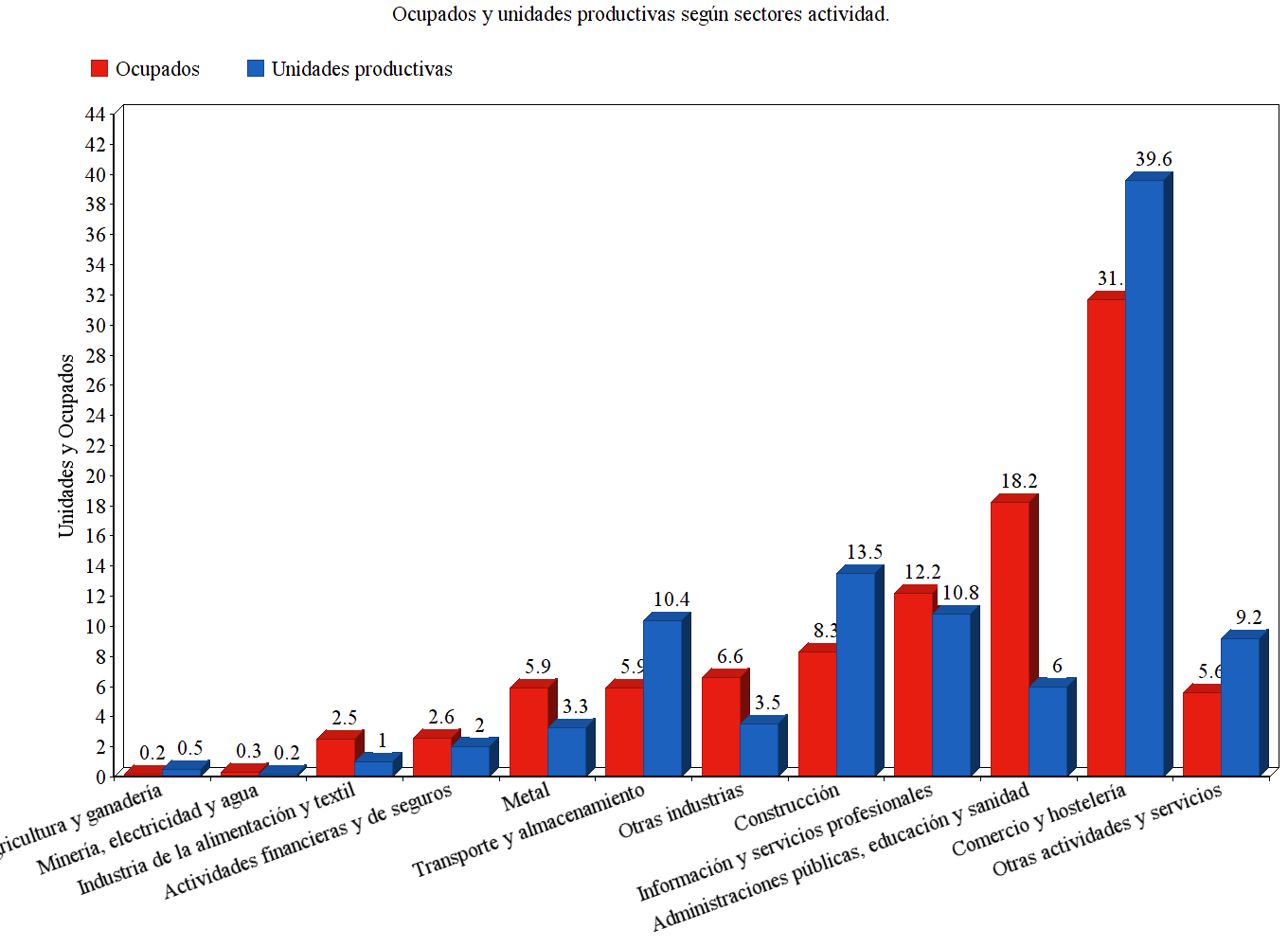 Al sector servicios le siguen el de la construcción, con un 8,3% de ocupados y un 14% de unidades productivas, y el de información y servicios profesionales (10,8% de unidades y 12,2% de ocupados). El alcalde de Madrid pedía desde hace unos días el cese de las obras como medida de seguridad.